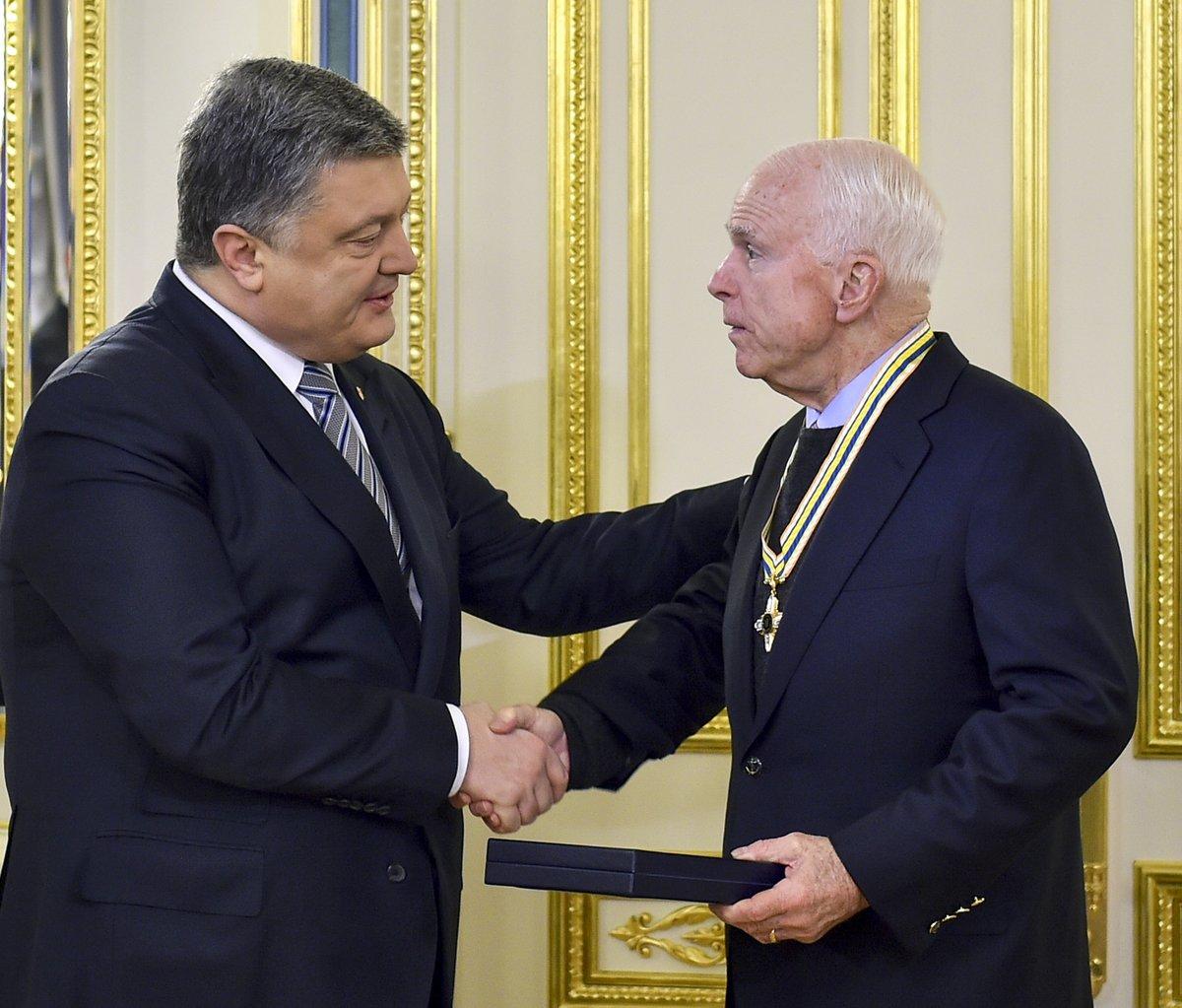 Президент Украины вручил сенатору Джону Маккейну и сенатору-республиканцу Линдси Грэму государственные награды.