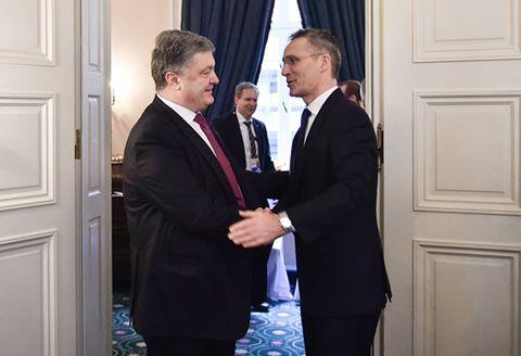 Президент Украины Петр Порошенко во время встречи с Генеральным секретарем НАТО Йенсом Столтенбергом проинформировал его о сложной ситуации на Донбассе и выразил благодарность за четкую позицию относительно осуждения агрессивной политики России и ее действий.