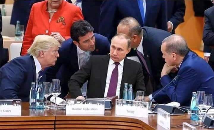 На волне эйфории от исторической встречи на саммите "Большой двадцатки" Дональда Трампа и Владимира Путина поклонники последнего опубликовали в соцсетях "отфотошопленный" снимок, где российский президент якобы сидит в окружении мировых лидеров, которые что-то обсуждают.