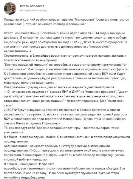 Спустя время Стрелков опубликовал краткий разбор провозглашения "Малороссии" (если его попытаются реализовать).