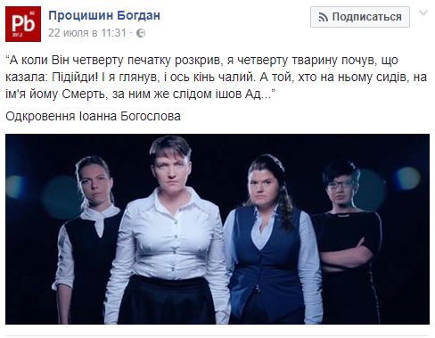 "Мне казалось что трэш в предвыборных компаниях уже выжил себя. У нас же крутые фотографы, стилисты, маркетологи и все такое! Но ведь нет!!! "Общественно-политическая платформа Надежды Савченко". У меня все!"