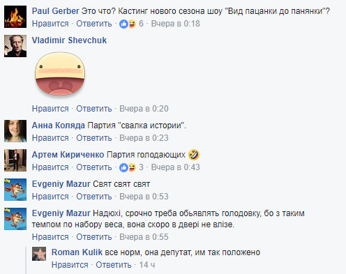 "Вера и Надя Савченко и ещё какие-то две бабы - типа партия "Народна справа Надії Савченко". Решили эротизмом электоральных мужиков завлечь надо полагать. Медведчук решил, видимо, попробовать что-то типа попсы а-ля Группа Виагра в политике попробовать", - написали пользователи.