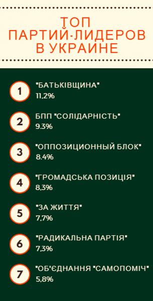 По данным опроса, также имеют шансы преодолеть 5-процентный барьер такие политические силы: партия Вадима Рабиновича «За життя», о симпатии к которой высказались 7,7% намеренных участвовать в выборах респондентов; «Радикальная партия Олега Ляшко», получившая поддержку 7,3% опрошенных; «Самопомощь» Андрея Садового, у которой нашлось 5,8% сторонников среди опрошенных.