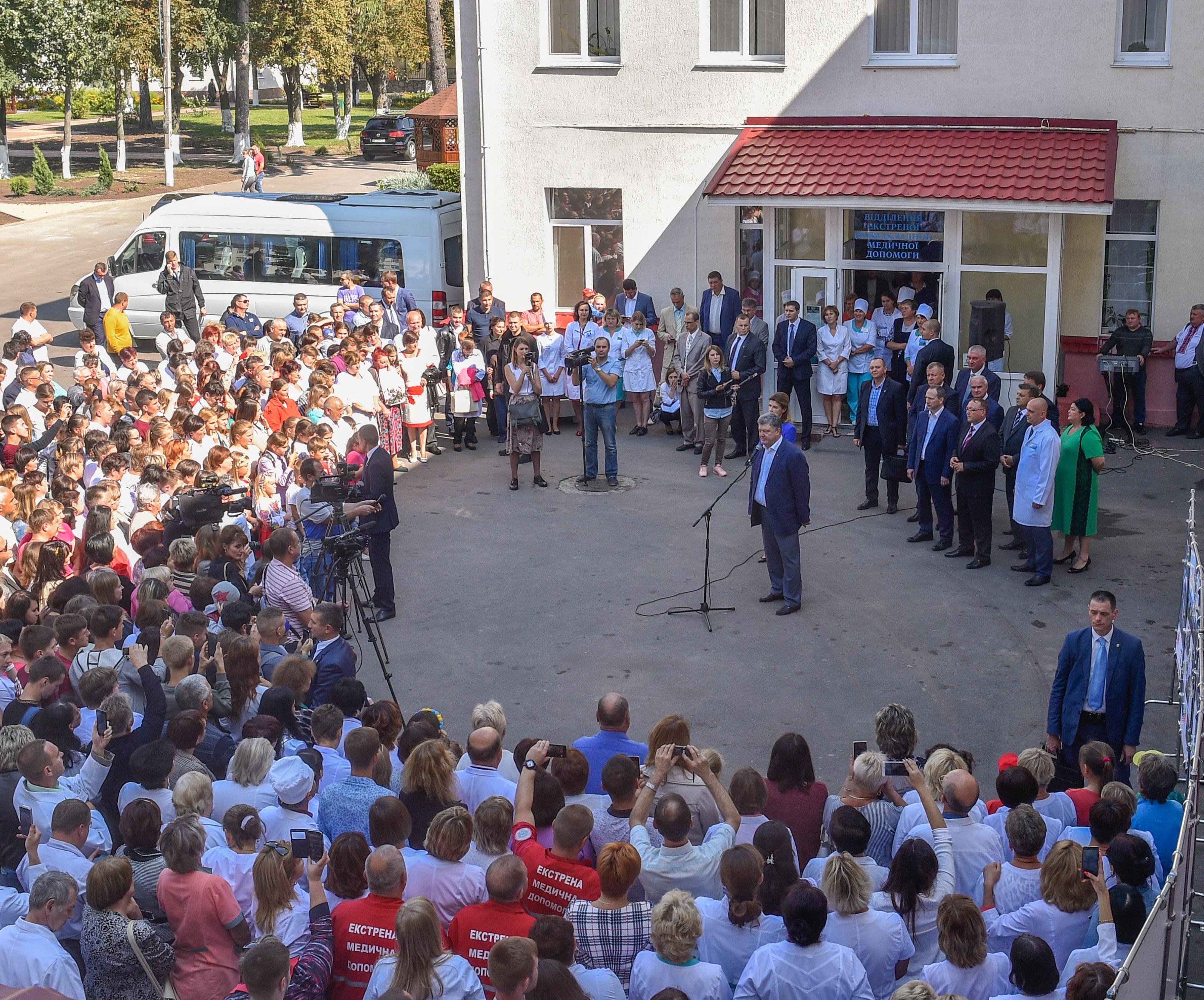 Петр Порошенко выразил надежду, что через неделю Верховная Рада проголосует за медицинскую реформу и сообщил, что отдельно будет и внедрен специальный проект о развитии сельской медицины. «Те, кто живут в селе нуждаются в таком же уровня медицинских услуг, который доступен человеку в районном, областном центре и в столице», - отметил он.