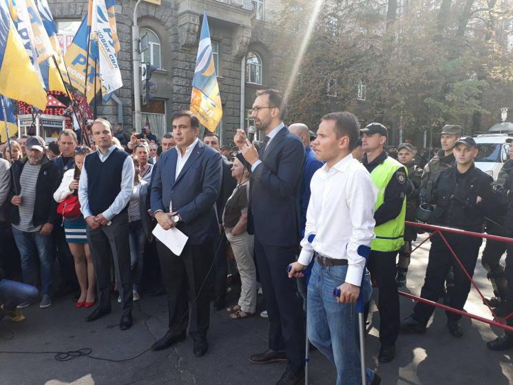 Добавим, митинг на Банковой не собрал огромного количества людей. Во время выступления Саакашвили рядом с ним находились нардепы Сергей Лещенко, Егор Соболев и Юрий Деревянко.