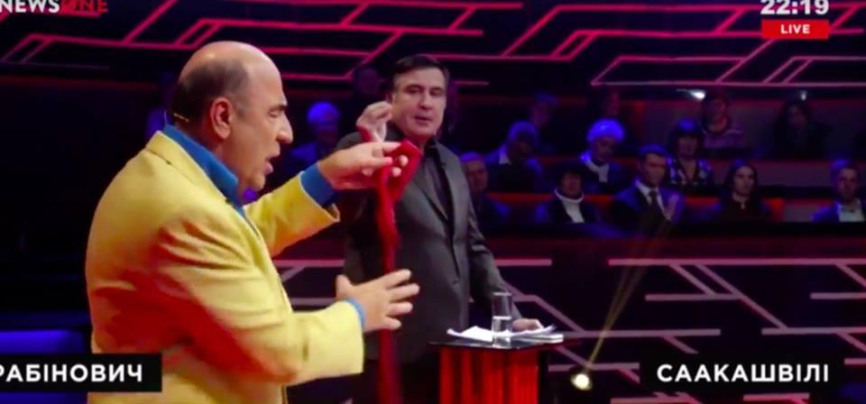 На телеканал NewsOne вышло в эфир политическое ток-шоу «Украинский формат». В одной из его частей состоялся спарринг экс-президента Грузии Михеила Саакашвили и народного депутата Украины Вадима Рабиновича.