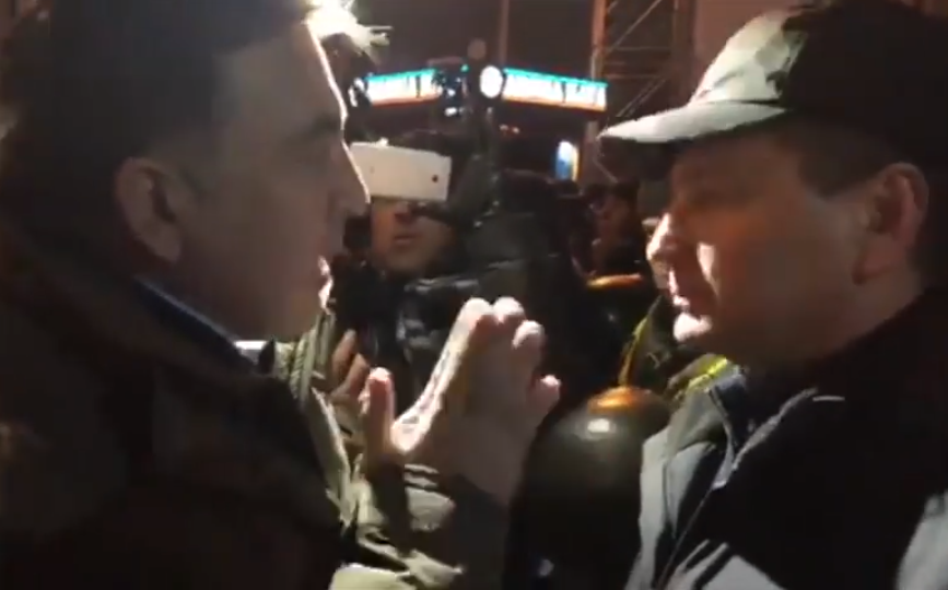 Глава "Руха нових сил"Михаил Саакашвили ночью начал устанавливать сцену для митинга, который собирается провести в полдень 17 декабря. В процессе произошла перепалка политика с главой полиции Шевченковского района Киева Германом Приступой.