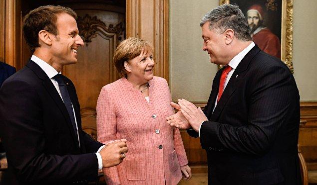 Президент Петр Порошенко обсудил с канцлером Германии Ангелой Меркель и президентом Франции Эммануэлем Макрона "дорожную карту" имплементации Минских соглашений и привлечения миротворцев ООН в оккупированные части Донбасса.