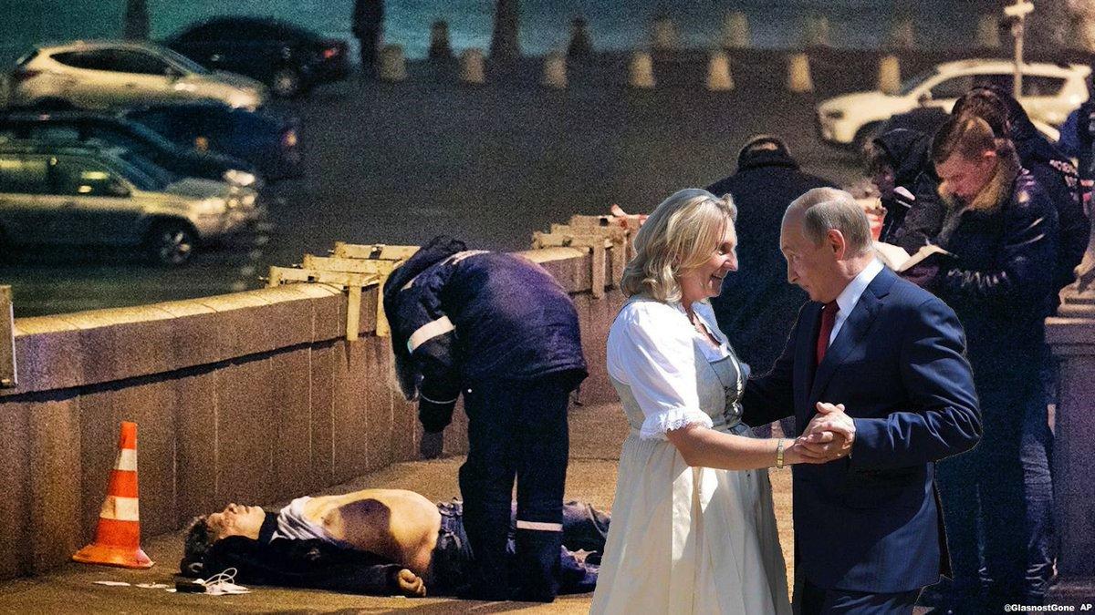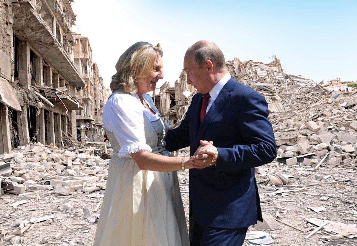 Пользователи сети пришли в ярость от веселых танцев министра иностранных дел Австрии Карин Кнайсль с российским президентом Владимиром Путиным.