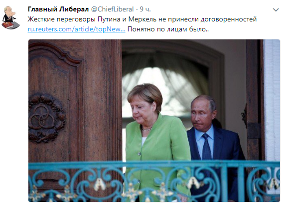 После встречи политиков была сделана фотография, которая очень ярко отображает итоги переговоров (вернее, отсутствие таковых). На лицах Путина и Меркель отчетливо видно разочарование.