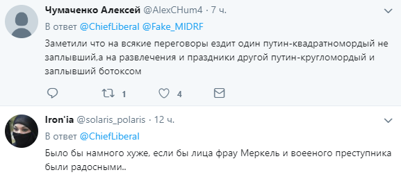 Напомним, что перед встречей с Меркель Путин куда более радостно проводил время, отплясывая с главой МИД Австрии на ее свадьбе. По этому поводу пользователи соцсетей атаковали австрийское внешнеполитическое ведомство жесткими фотожабами.
