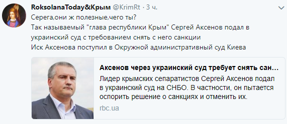 Данная новость вызвала насмешки в сети, ведь еще пару лет назад крымские коллаборанты вовсю "подпевали" Кремлю, который утверждал, что санкции не вредны и даже отчасти полезны.