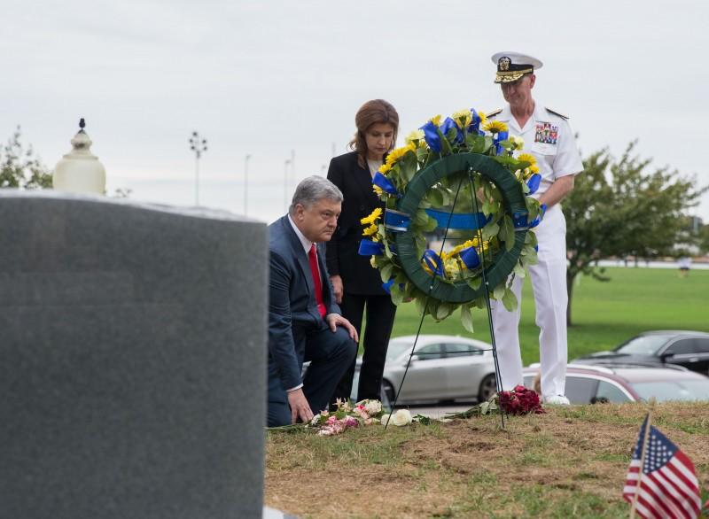Во время рабочего визита в США Президент Украины Петр Порошенко вместе с женой Мариной Порошенко почтили память американского сенатора Джона Маккейна.