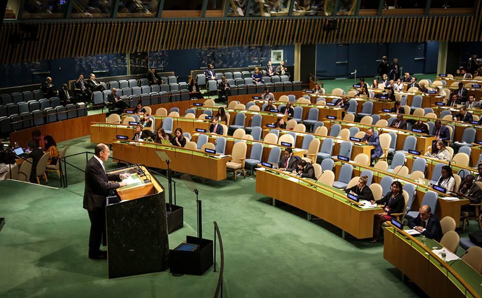 Министр иностранных дел России Сергей Лавров на Генеральной Ассамблее ООН выступал перед почти пустым залом. Оставшиеся слушатели спали или глазели в телефоны.