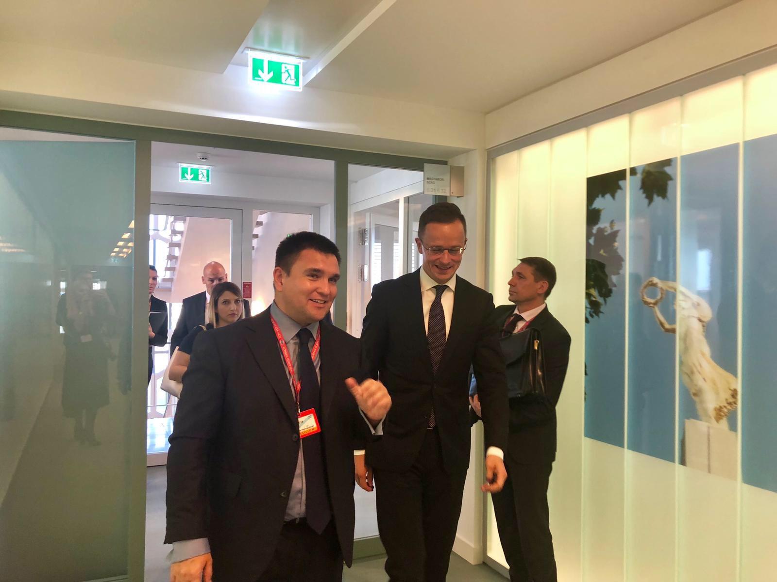 "С Петером Сийярто договорились окончательно об изменении должности уполномоченного, проведении консульских консультаций и встрече на следующей неделе в Варшаве во время Варшавского форума по безопасности. И конечно говорили обо всех наших других "любимых" темах", - говорится в сообщении Климкина.