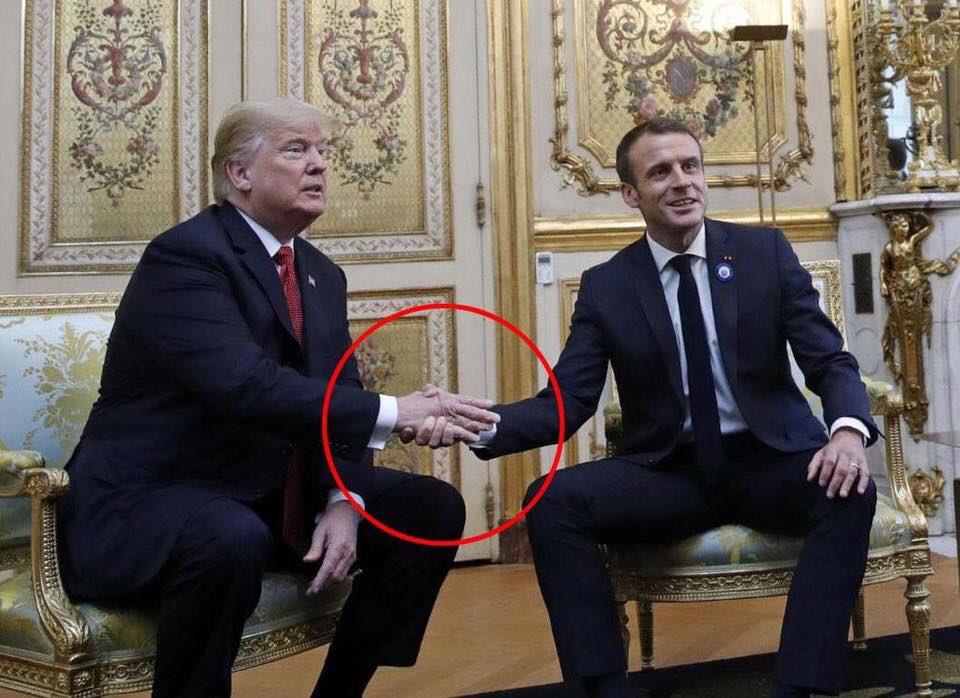 10 ноября соцсети облетело забавное фото, на котором президенты США и Франции странным образом жмут друг другу руки.