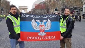 "Интересная информация по "желтым жилетам" с флагом фейкового образования под названием "ДНР" на фото (Слева – Сорлин Фабрис Член н.н. «Международного аналитического центра «Катехон», который действует под эгидой К. Малофеева и возглавляемого им Фонда Святителя Василия Первозванного. В наблюдательный совет "Катехона" входят идеологи российского "Евразийства" С. Глазьев (советник президента РФ) и о. Дугин (лидер "Международное Евразийское движение"). Функционер так называемого «интеграционного комитета «Россия-Донбасс», который создан и финансируется российскими спецслужбами. Дело – Ксавье Моро. Фейковый "наблюдатель" на псевдовыборах в ОРДЛО. В течение 17 лет проживает в РФ, гражданин РФ с 2013 года. Основатель «Европейского центра стратегического анализа «Стратпол» (составляющая «пятой колонны» РФ во Франции). Функционер ГО «Восток Франция - Солидарность Донбасс», которая подконтрольна российским спецслужбам)", - рассказали в СБУ.