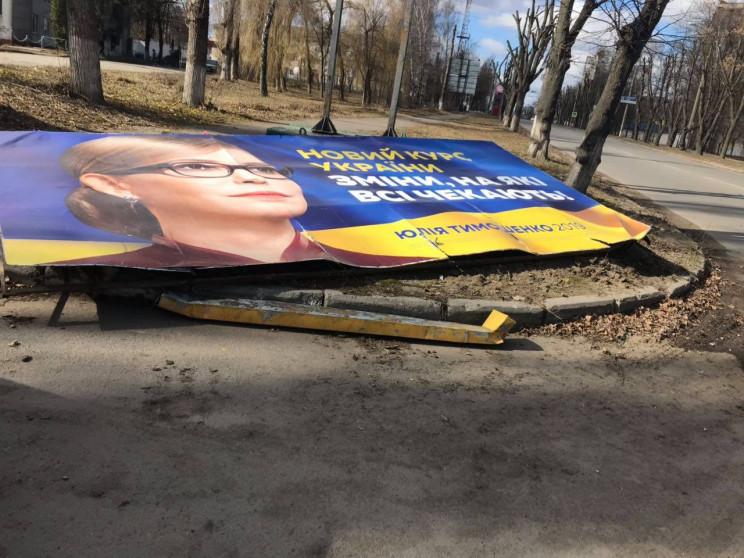 Несколько биллбордов Тимошенко "сдуло" ветром на Винниччине и в Уиеве. Ранее борд с политагитацией не устоял на Хмельнитчине.