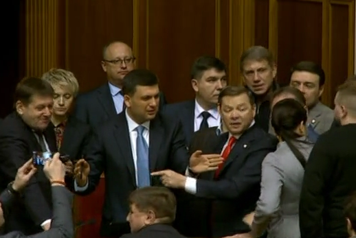После этого Ляшко и депутаты ео фракции подошли к правительственной ложе, возникла небольшая потасовка. Ляшко начал спорить с Гройсманом. Спикер Андрей Парубий пытался вернуть "радикалов" на их рабочие места, но был вынужден объявить перерыв на 15 минут.