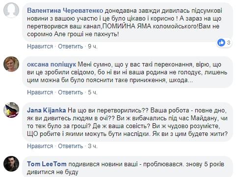 После выхода интервью в эфир страничка телеведущей Аллы Мазур в Facebook заполнилась гневными комментариями пользователей соцсети, которые отмечают, что уровень журналистики на данном телеканале существенно снизился: