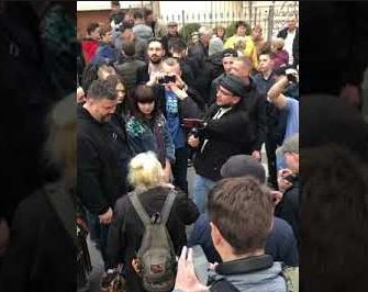 В конце концов, спустя около получаса после начала митинга, инициативная группа вместе с упомянутыми чемоданами все-таки зашла в здание штаба.