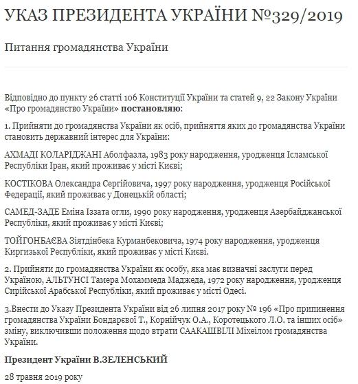 "Внести в Указ Президента Украины от 26 июля 2017 года № 196 "О прекращении гражданства Украины Бондаревой Т., Корнийчук А.А., Коротецкого Л.А. и других лиц" изменение, исключив положение о потере Саакашвили Михеилом гражданства Украины", - сказано в указе.