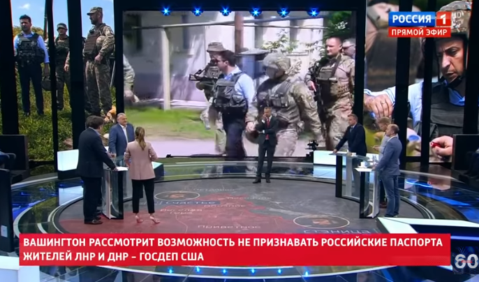 В эфире пропагандистского шоу "60 минут" на российском ТВ гости, по традиции "перемывавшие кости" Украине и ее властям, разругались.