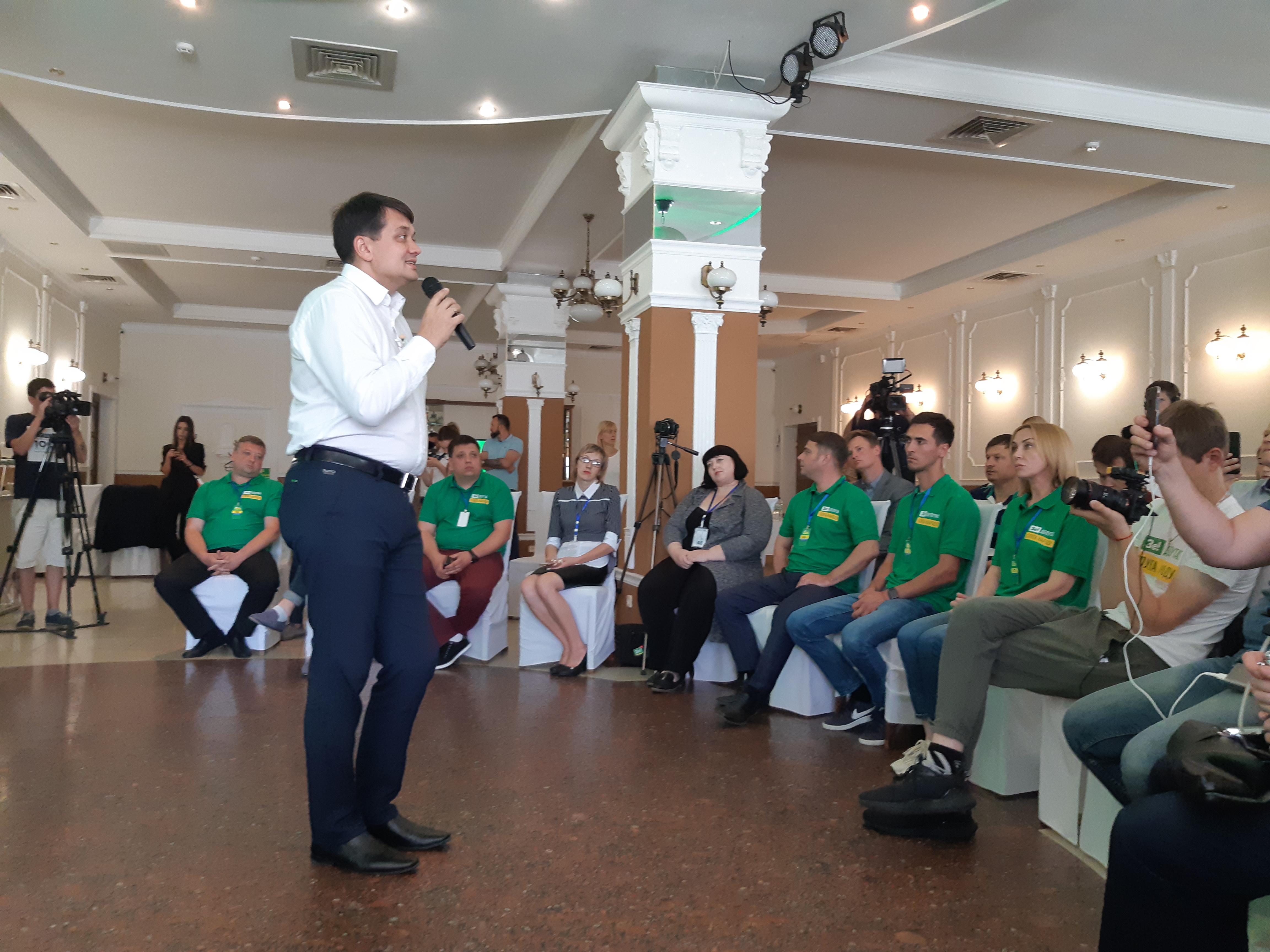 10 июля с визитом в Северодонецк прибыл Дмитрий Разумков, глава партии Слуга народа, и дал пресс-конференцию. Конечно, основные вопросы были по спискам партии на внеочередные выборы, и стратегии в Луганской области.