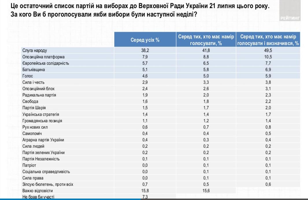 В течение 13-17 июля социологическая группа «Рейтинг» провела социсследование перед предстоящими выборами в парламент.
