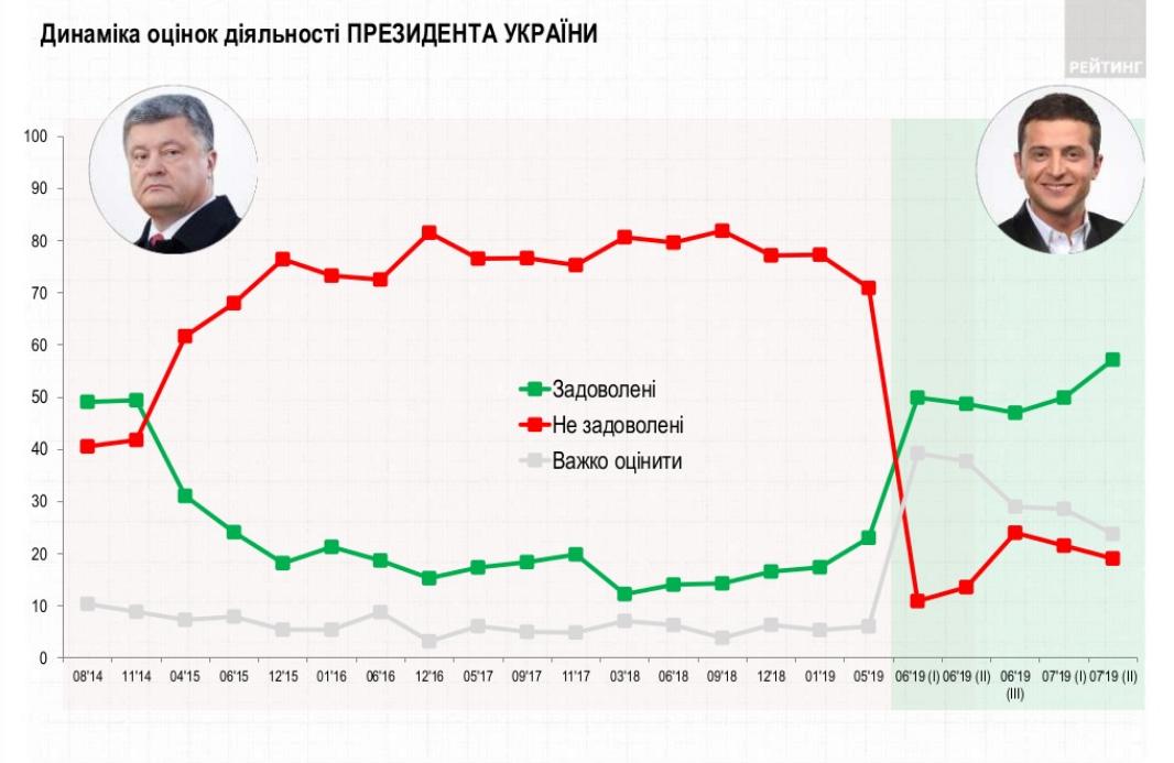 58% опрошенных украинцев довольны деятельностью Владимира Зеленского в должности президента, 19% - отнеслись к его деятельности отрицательно, еще 24% - пока не смогли сформировать свое отношение к нему.