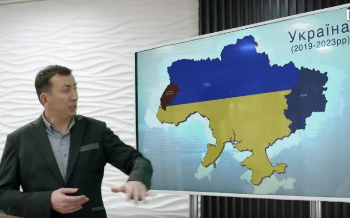В кадре показана карта Украины, на которой другими цветами закрашены Донбасс и Львовская область. Герой сериала в это время говорит, что "таким образом страна объединилась, кроме Королевства Галицкого и СССР".