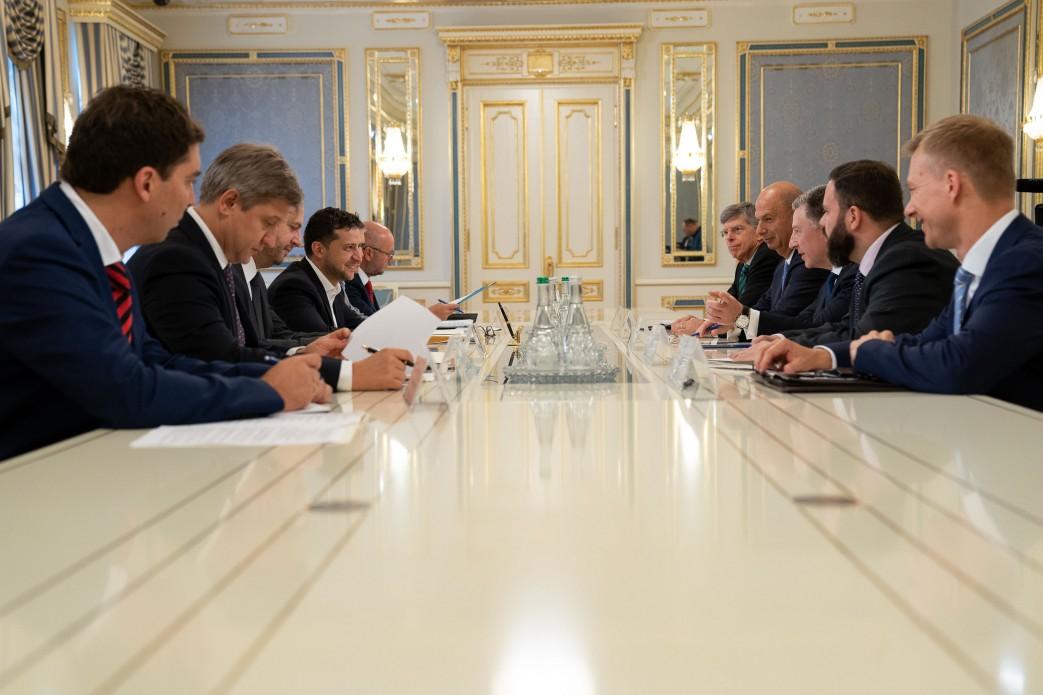 Президент Украины Владимир Зеленский встретился со специальным представителем США по вопросам Украины Куртом Волкером и постоянным представителем США при Европейском Союзе Гордоном Сондландом.