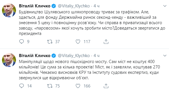 Мэр Киева уточнил, что манипуляции касались нового пешеходного моста и Шулявского моста.