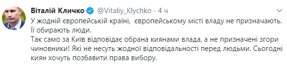 Об этом Виталий Кличко сообщил в Твиттере, передает Час Пик.