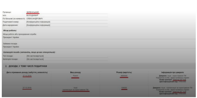 Согласно информации с Единого реестра деклараций лиц, которые уполномочены на исполнение государственных функций, Владимир Зеленский обогатился практически на 5 миллионов гривен за роялти, то есть использование кем-то его авторских прав, а также получил компенсацию "за использование ТМ". Все выплаты были произведены ТОВ "Квартал 95".