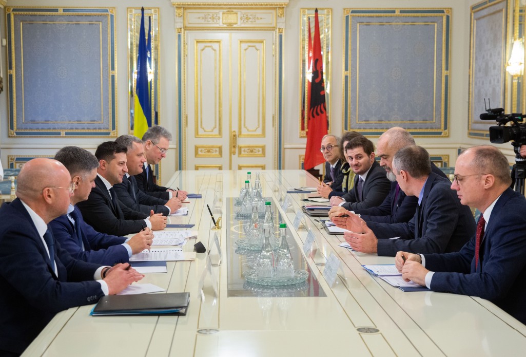 Президент Украины Владимир Зеленский встретился с Премьер-министром, министром европейских и иностранных дел Республики Албания, действующим Главой ОБСЕ Эди Рамой.