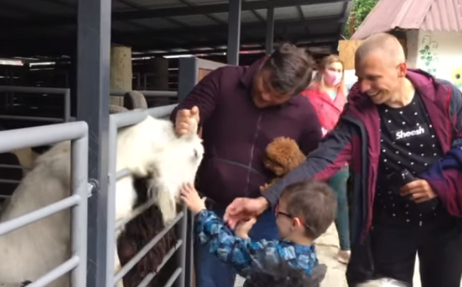 После этого козел хотел что-то съесть из руки Богдана, за что снова получил по голове.