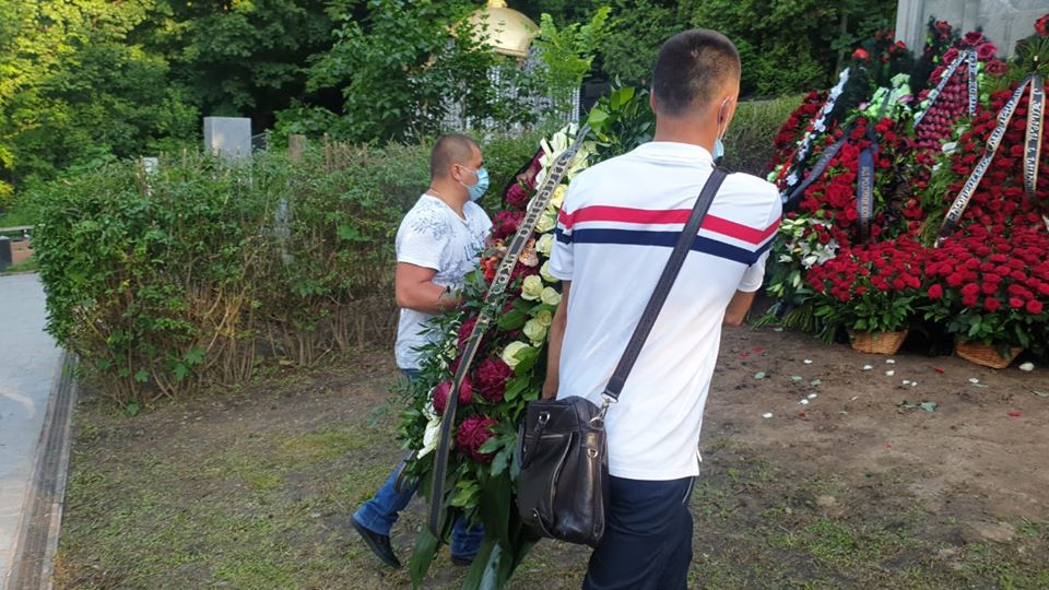 Через 4 (ч.е.т.ы.р.е.) часа после этого на кладбище приехала машина, и два человека весьма характерной внешности с весьма характерными барсетками, скромно поставили к общей массе цветов и венков еще один венок. От Зеленского", - написал Бирюков.