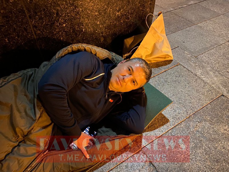 Прошлой ночью Цебрий ночевал на крыльце ОПУ в спальном мешке, передает Час Пик со ссылкой на Телеграм-канал PavlovskyNews.