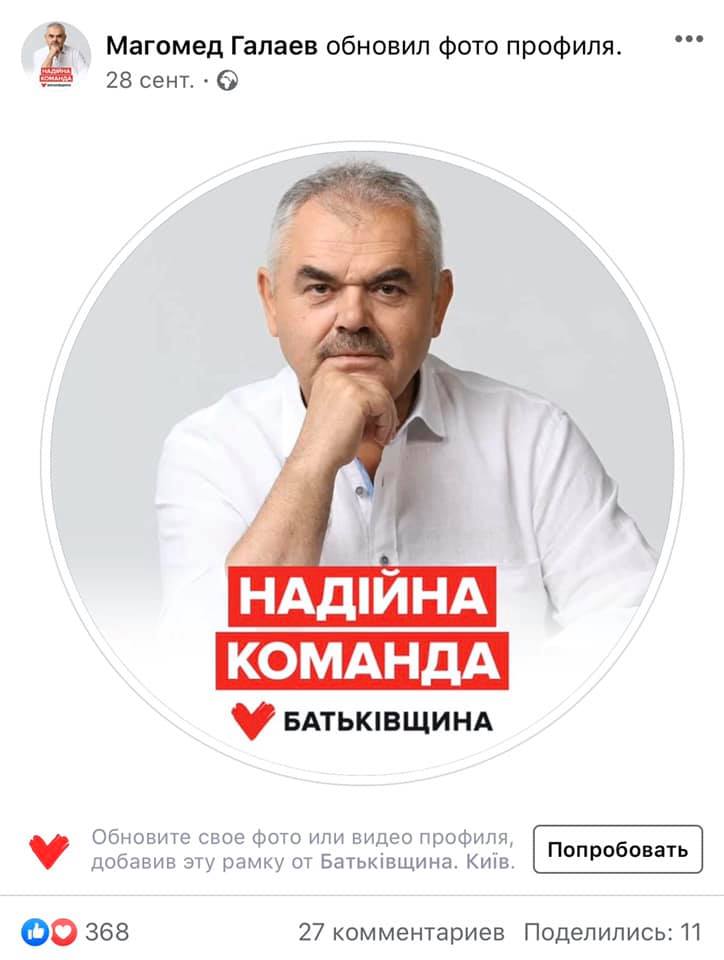 Так, отец семейства Магомед-Шарип Галаев баллотируется в Сумской областной совет от партии "Батькивщина", а его два сына баллотируются в городской совет Сум: Расул Галаев - от "Европейской Солидарности", Рустам Галаев - от "Слуги народа".