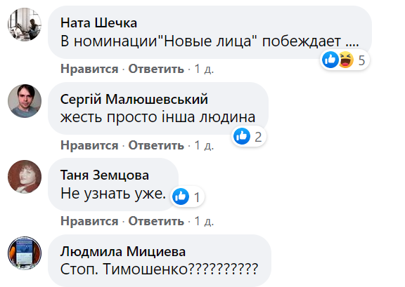 Пластический хирург Дмитрий Слоссер также уверен, что Тимошенко прибегла к помощи его коллег, а именно сделала подтяжку лица и нижних век. А пластический хирург Кристина Мусихина предположила, что Тимошенко сделала блефаропластику (операция по изменению формы век, разреза глаз - ред.) и липофилинг (наполнение недостающего объема лица собственным жиром).
