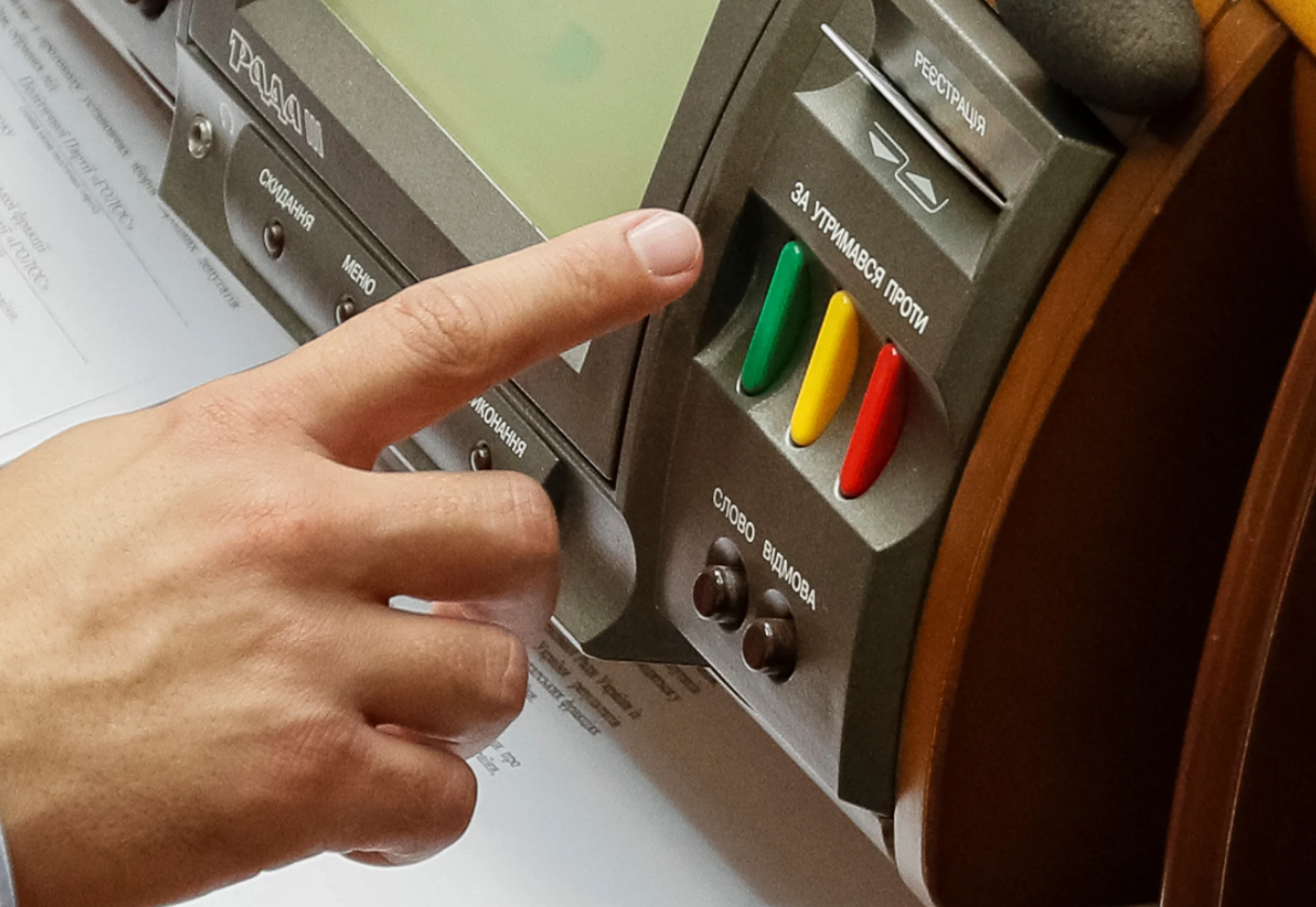 Все время голосования (10 секунд) каждый нардеп должен одну руку держать на сенсорной кнопке, а второй нажимать на кнопку для голосования - "За", "Против" или "Воздержался".