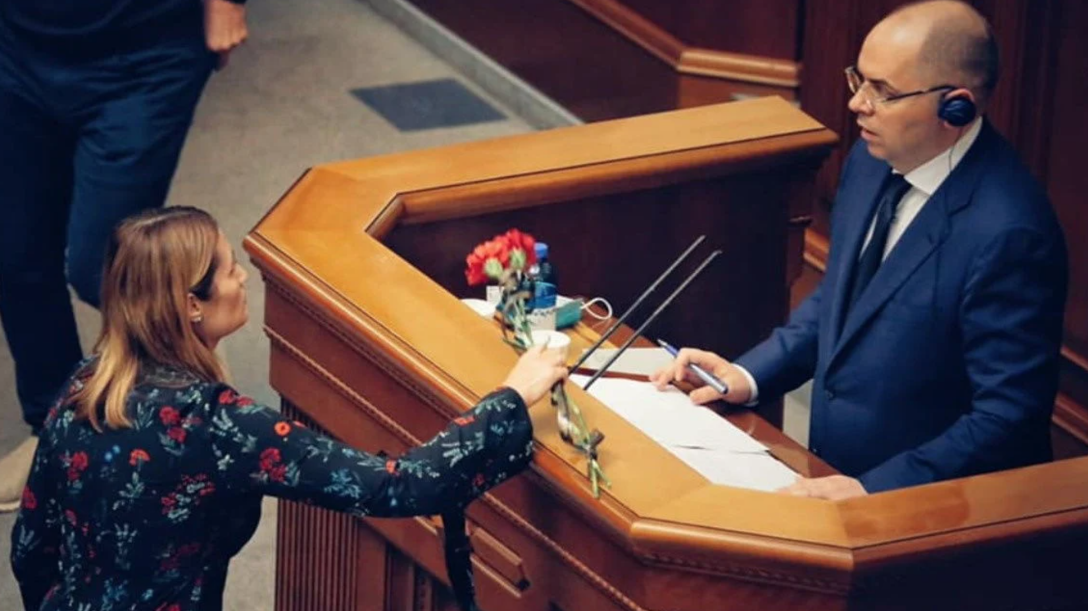 "Так вот, господин Степанов, это похоронные цветы. Их родственники человека, который умер в 68 лет, просили вам передать. Чтобы вы знали, что за каждой смертью - по 500 в день - стоит конкретный человек", - отметила народный депутат и вручила "послание" главе МОЗ.