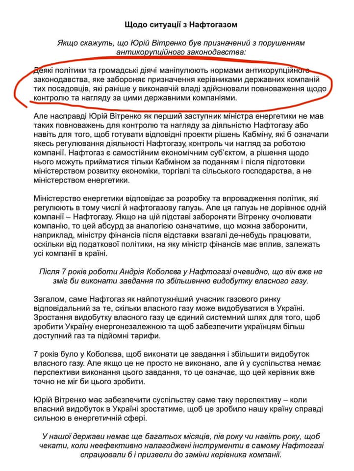 В частности в "черновиках" ответов на вопросы, которые могли быть подняты при встрече с госсекретарем США, есть также попытки объяснить кадровые перестановки в НАК "Нафтогаз".