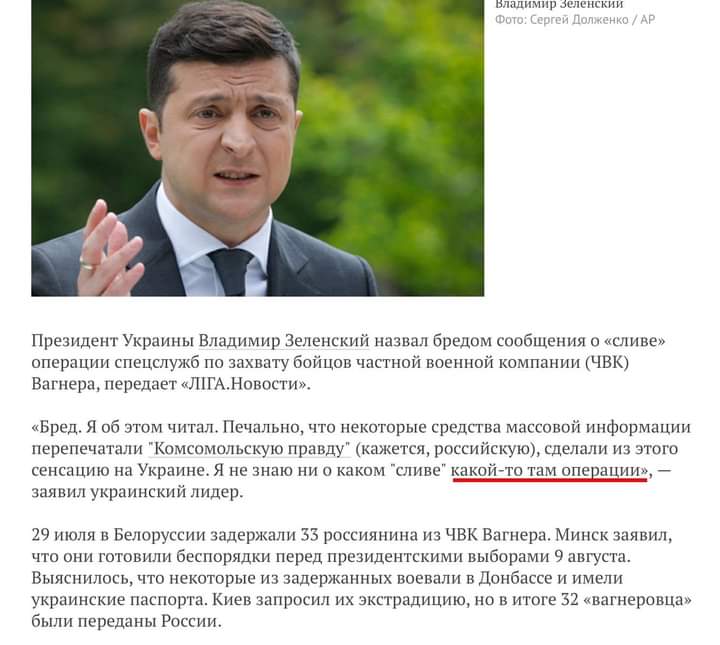 Да и сам Зеленский на следующий день выдал несколько иную версию сказанного, мол, понятия не имеет о "сливе" "какой-то там" операции.