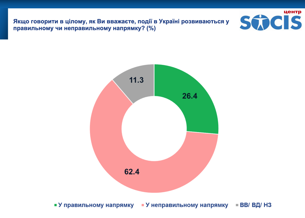 Кроме того, 62,4% опрошенных считают, что события в Украине не развиваются в правильном раправлении.