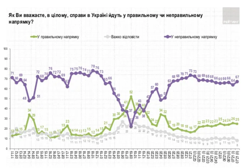 Опрос проводился Социологической группой "Рейтинг" в течение 23-25 июля 2021 года, передает Час Пик.