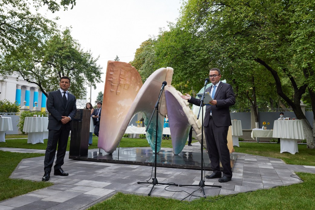 Кроме того, Зеленскому и участникам саммита Крымской платформы продемонстрировали скульптуру «Звуки города», посвященную Крыму.