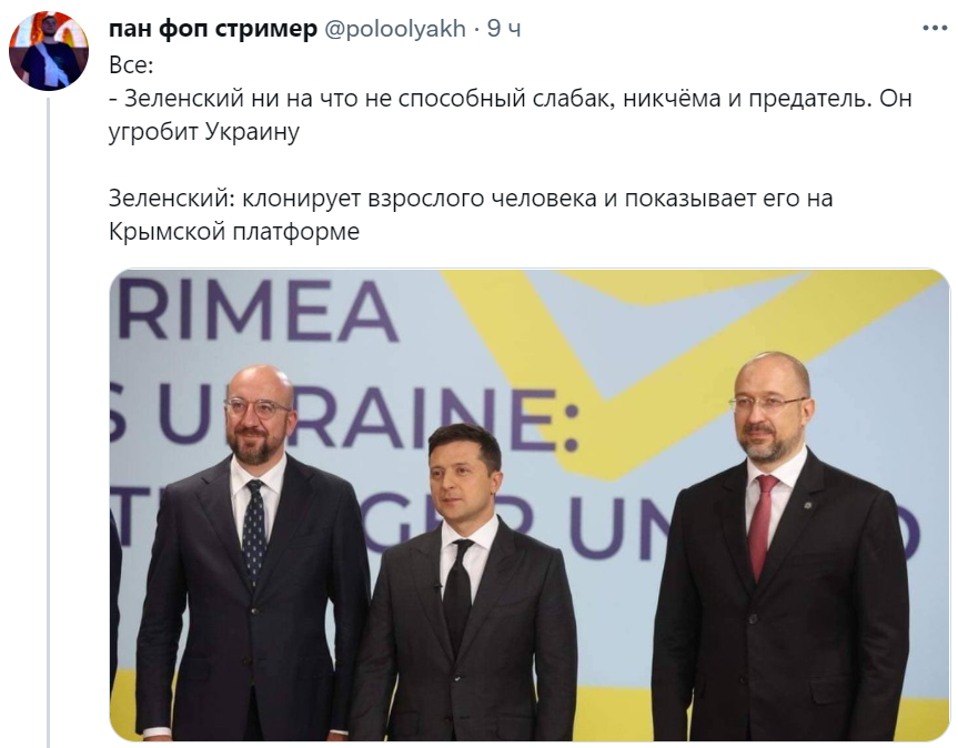 Свежие фото политиков-"двойников" были сделаны 23 августа на саммите Крымской платформы. В сети шутят, что Шмыгаль и Мишель хотя бы надели разные галстуки, иначе их вообще бы было не различить.