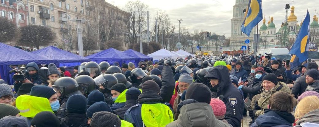 Как сообщают украинские СМИ, около 12:20 активисты начали устанавливать бочки с огнем, на которые хотели поставить "котлы" с чаем. Правоохранители попросили этого не делать и попытались убрать их. Участники акции пытались помешать этому, передает Час Пик.